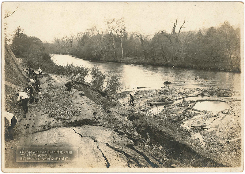 「昭和十三年五月二十九日午前一時四十二分屈斜路地方に地震が起こり、地震断層、亀裂、山崩れ、陥没、沈降等の地形変動を起し、人畜、家屋道路等に担当の被害を及ぼした。地震そのものは、比較的局部的なものであったが、従来この地方には地震がほとんどなかったので、この地震は学術上より見ても意味深いものであった。